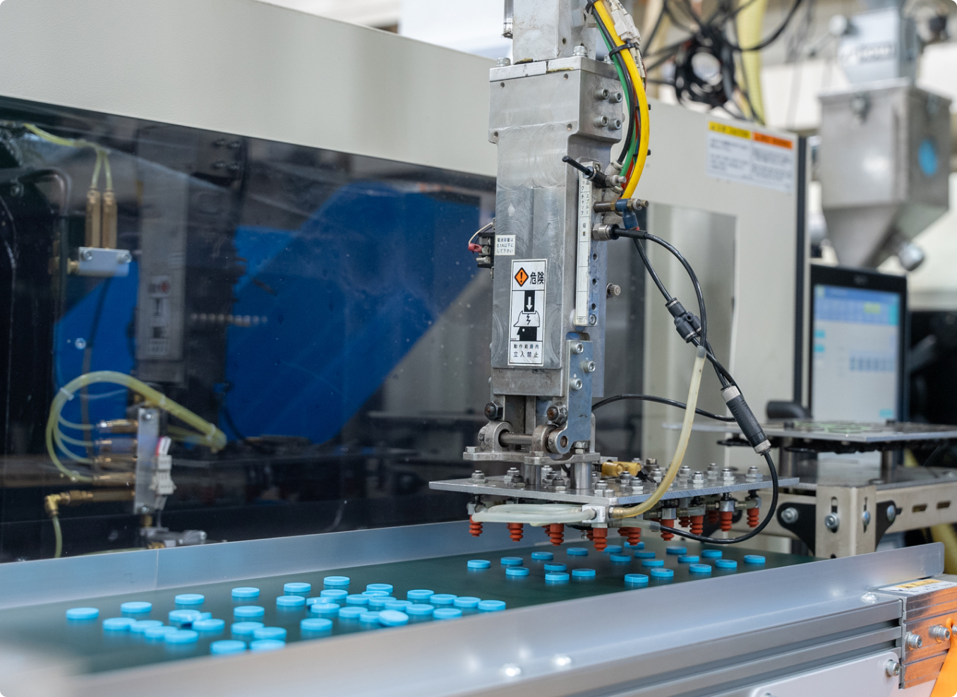熊野合成で最も注力している生産技術。品質要求の高い医薬、医療、食品、化粧品などの成形品を数多く手掛けてきました。これらの成形技術を応用し、モノづくりの高効率化、最適化を図り、信頼性の高い製品をお届けします。