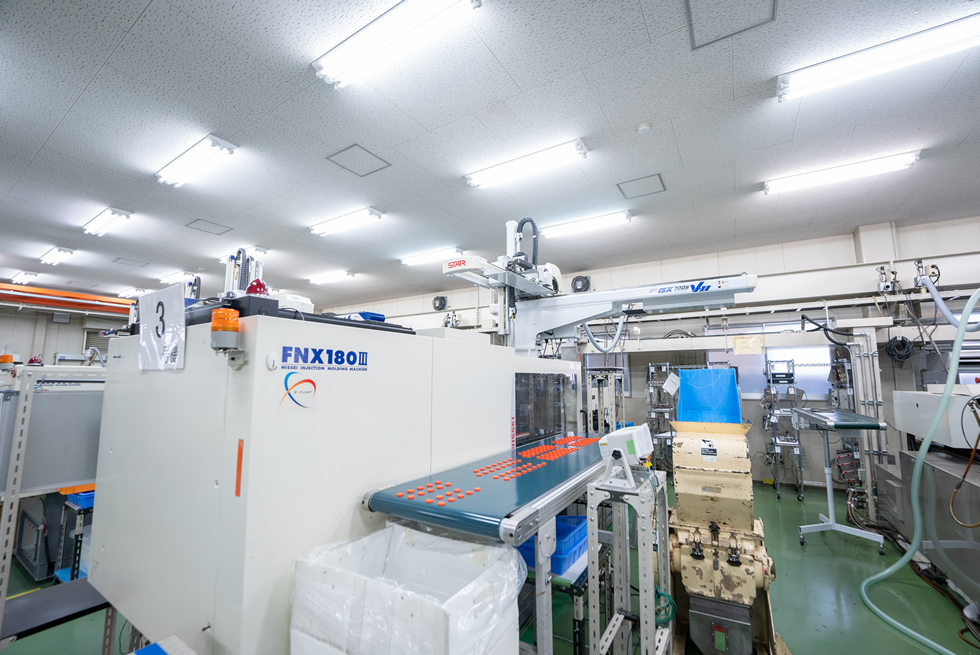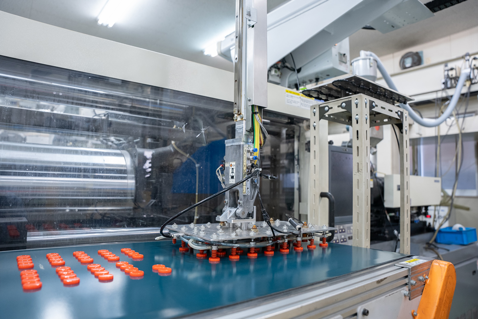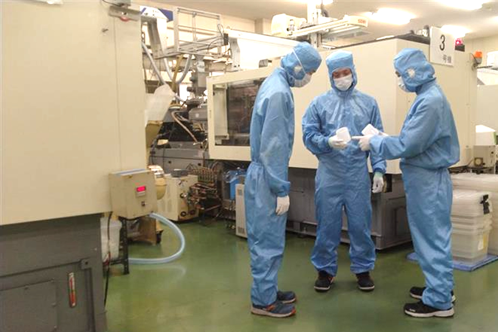 特に成形品のリークチェック、ピンホールなど不良を防ぐため、成形工程のインラインにて検査装置を組み込み徹底した品質管理を行っています。